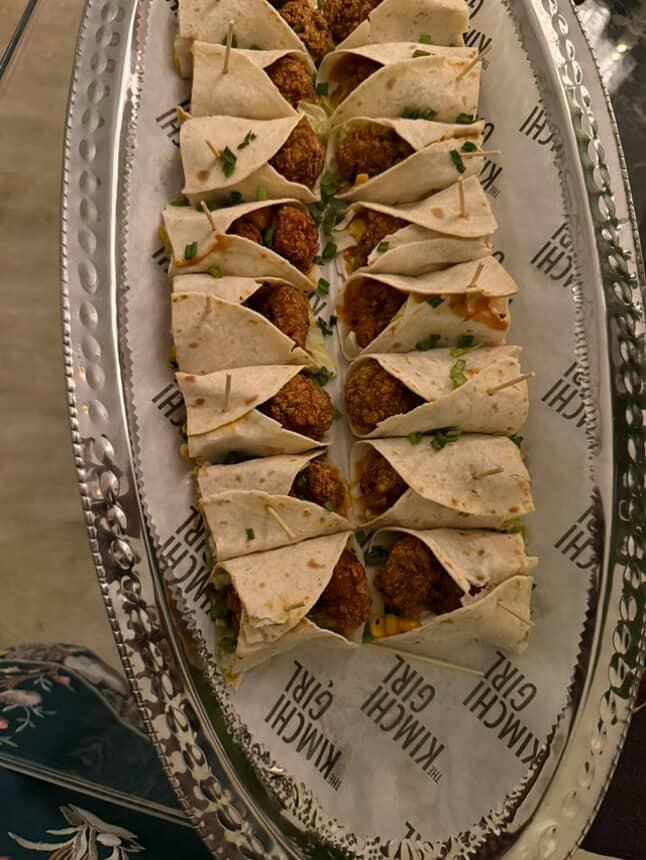 Be the first to review “Korean Fried Chicken Tacos Bites Platter with Gochujang Sauce”